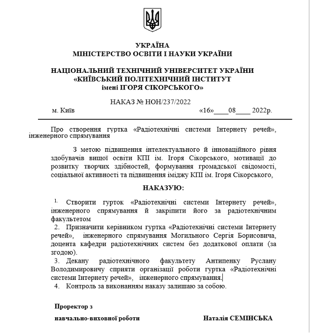 Рисунок 1‒ Наказ про створення гуртка інженерного спрямування